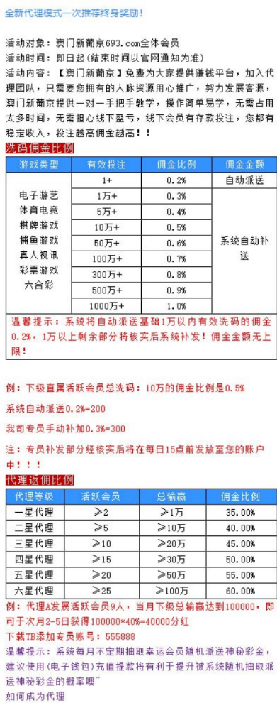 代理返佣最高60% 抽水1%每日结算